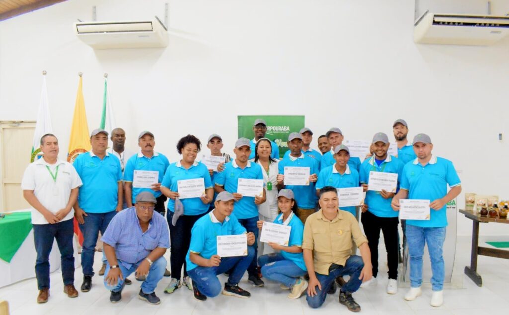 15 personas fueron certificadas por parte de CORPOURABA tras recibir el curso en establecimiento de apiarios para producción de miel de abejas el cual fue financiado por la Corporación. La Directora Vanessa Paredes Zúñiga, lideró la entrega de las certificaciones. En total se capacitaron 6 beneficiarios de la estrategia BancO2 y 3 de Negocios Verdes para fortalecer los proyectos productivos apícolas que se vienen ejecutando con numerosas familias campesinas. 6 integrantes del Hogar de Paso de Fauna Silvestre de CORPOURABA recibieron la formación para afianzar conocimientos sobre el adecuado manejo de las abejas que son recuperadas y atendidas en acciones de rescate.
