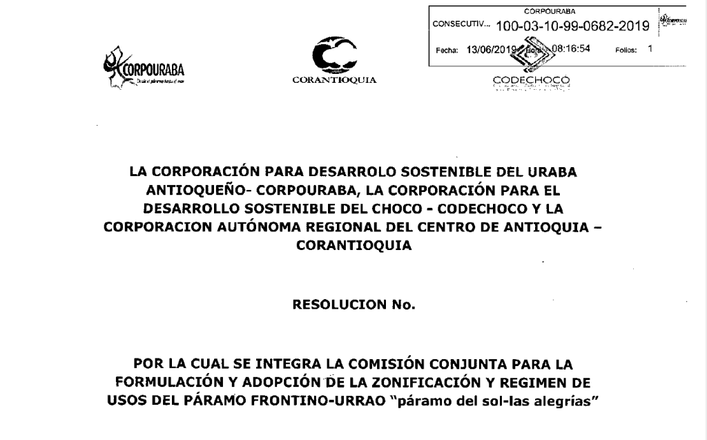 Por la cual se integra la comisión conjunta para la formulación y adopción de la zonificación y régimen de usos del páramo Frontino-Urrao «Páramo del Sol Las Alegrías».