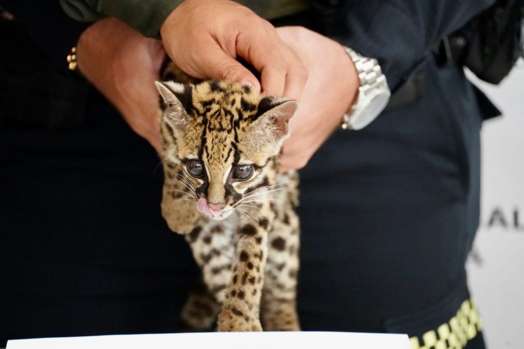 Gracias a la acción responsable de un habitante del municipio de Dabeiba, fue posible el rescate de un ocelote (Leopardus pardalis) juvenil que permanecía en una vivienda siendo tenido como mascota.