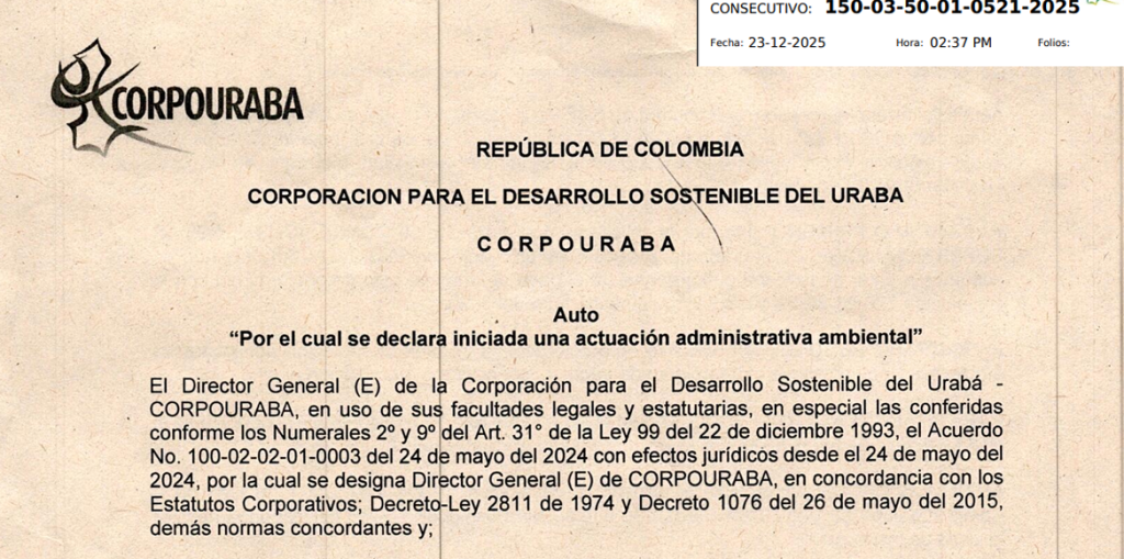 PERMISO DE CONCESIÓN DE AGUAS SUPERFICIALES150-16-51-02-0011-2025AUTO 150-03-50-01-0521-202523-12-2025Por el cual se declara iniciada una actuación administrativa ambientalNo procede ningún recurso. De conformidad con lo dispuesto en el artículo 75 ley 1437 de 2011.