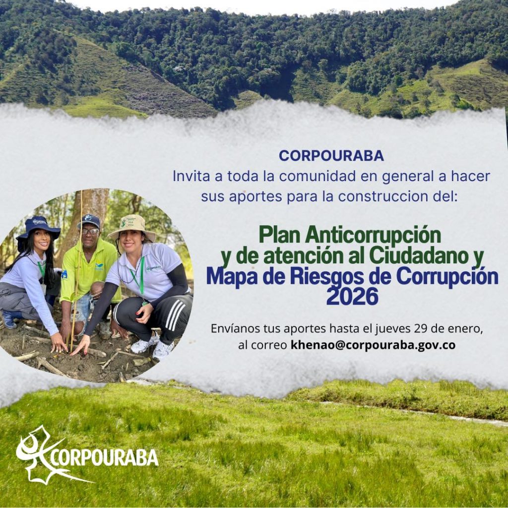 CORPOURABA pone a disposición de la comunidad en general el Plan Anticorrupción y de Atención al Ciudadano y, el Mapa de Riesgos de Corrupción 2026, para su adecuada construcción.