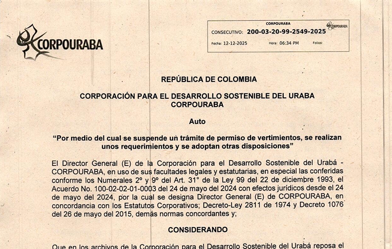 AUTO O430 Y 2549 DE 2025 Y RESOLUCIONES ASOCIADAS – TERRITORIAL NUTIBARA: TRÁMITE Y SUSPENSIÓN DE PERMISO DE VERTIMIENTOS Y REQUERIMIENTOS AMBIENTALES.