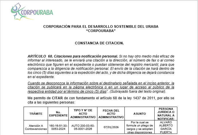 ATENCIÓN A CONTRAVENCIONES160-16-51-30-0053-2024AUTO 200-03-50-05-0001-202607/01/2026Por la cual se formula un pliego de cargos y se adoptan otras disposicionesALVARO ALBERTO GARCÍA PUERTA